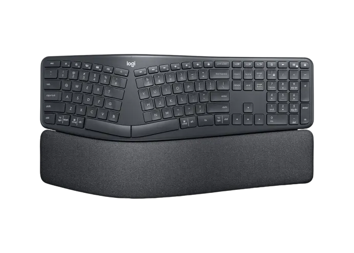 Wireless Keyboard Logitech ERGO K860, Curved keyframe, Split layout, Ultra precise typing, Wrist rest, 2xAAA, 2.4Ghz+BT, EN, Graphite