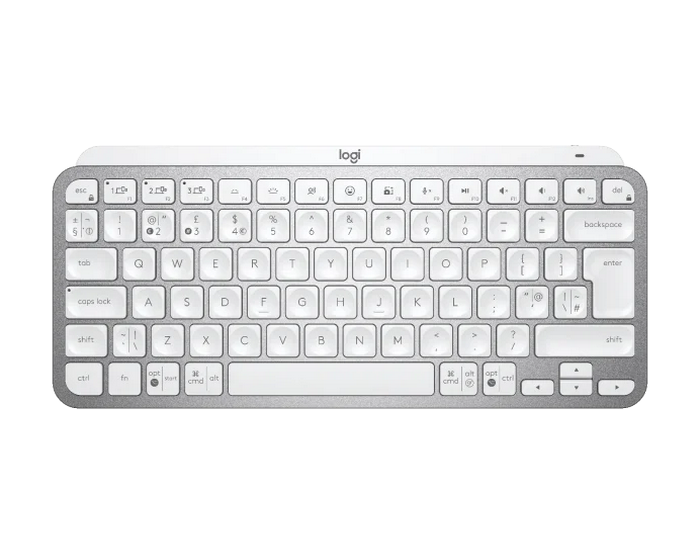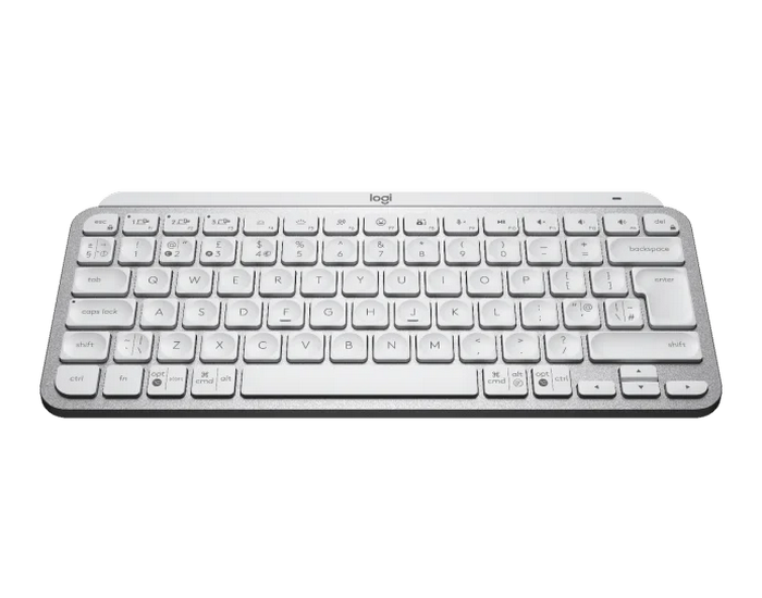 . English keys only!!! Specs & Details Dimensions MX Keys Mini Keyboard Height 131.95 mm Width 295.99 mm Depth 20.97 mm Weight 506.4 g Technical Specifications Minimalist Wireless Illuminated Keyboard Connect via the Bluetooth Low Energy technology Easy-switch keys to connect up to three devices and easily switch between them 10 meters wireless range Hand proximity sensors that turn the backlighting on Ambient light sensors that adjust backlighting brightness USB-C rechargeable. Full charge lasts 10 days – or 5 months with backlighting off 7Battery life may vary based on user and computing conditions. On/Off power switch Caps Lock and Battery indicator lights Compatible with Logitech Flow enabled mouse Sustainability Graphite plastics 30% post-consumer recycled material 8Excludes packaging, printed circuit board (PCB). Pale Grey plastics 12% post-consumer recycled material 9Excludes packaging, printed circuit board (PCB). Rose plastics 12% post-consumer recycled material 10Excludes packaging, printed circuit board (PCB). Paper Packaging FSC™ -certified Part Number Pale Gray 920-010499
