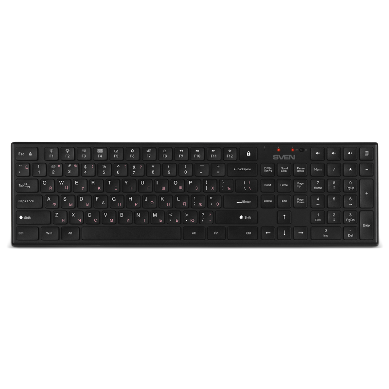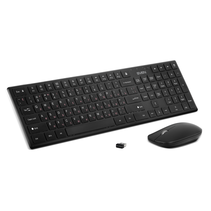Wireless Keyboard & Mouse SVEN KB-C2550W, Scissors keys, Fn keys, Power SW, 1000dpi, 3 buttons, Ambidextrous, 1xAAA/1xAA, 2.4Ghz, EN/RU, Black