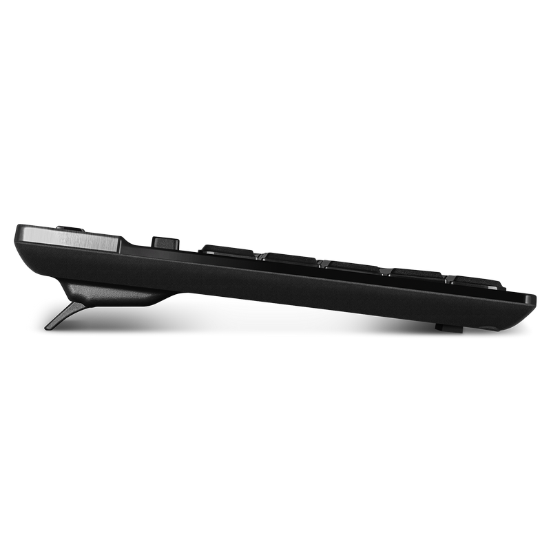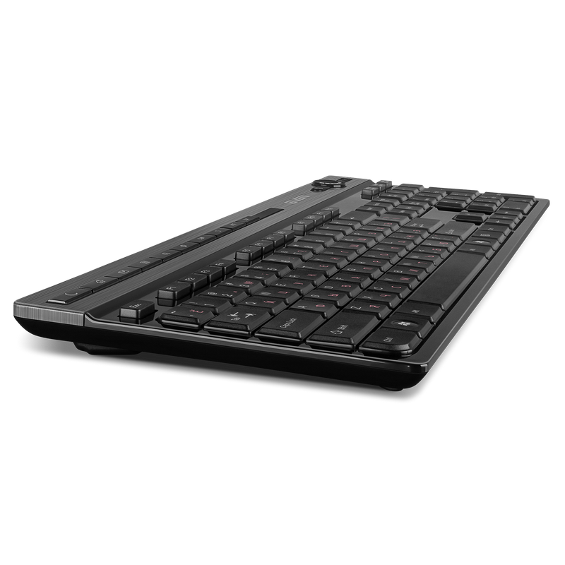. Typе standard Communication technology wireless OS compatibility Windows Keyboard layout Rus/Eng Cyrillic alphabet layout Windows Number of keys, pcs 115 Number of shortcut keys, pcs 11 Interfacе USB Keys contact membrane Battery type 1 × AA Durability, clicks more than 20,000,000 Conformity to standards FCC, CE, EAC Dimensions (W × H × D), mm 445 × 155 × 24 (34) Weight, g 470 Color black