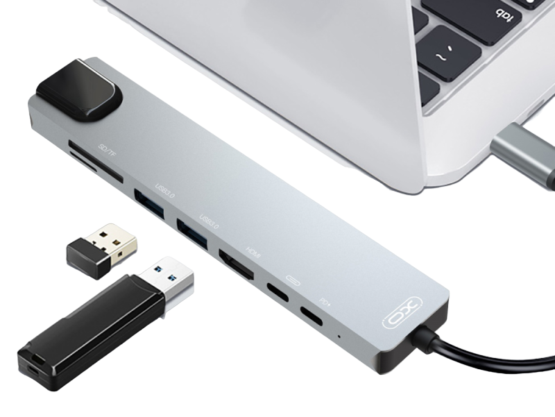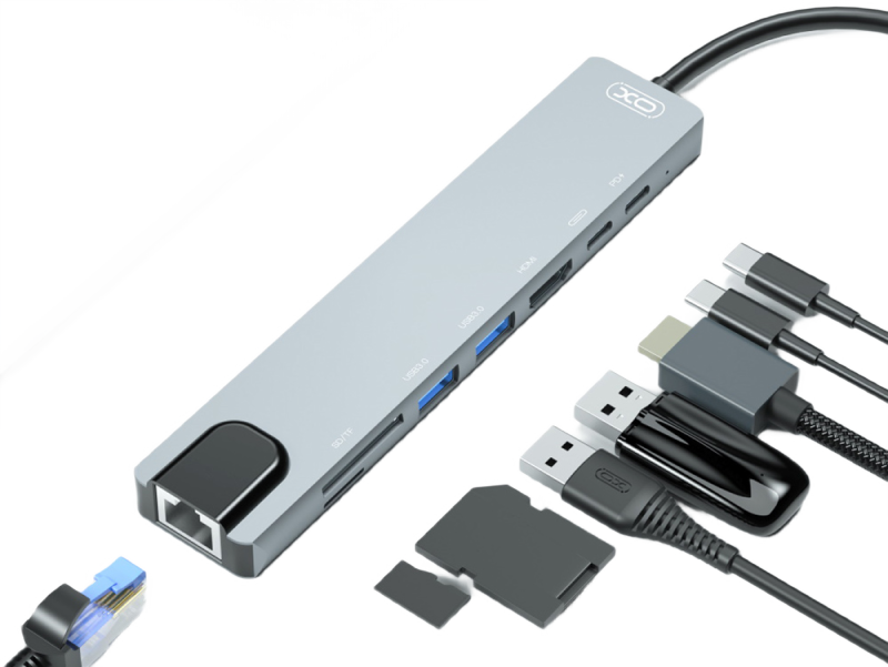 XO HUB003 USB-C adapter 8-in-1 (HDMMI+USB2*2+PD Cgarger+PD reader+card reader)