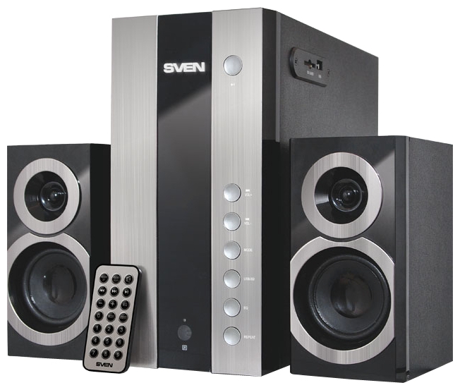 SVEN MS-1090 Black Тип 2.1 Суммарная мощность 40 Вт Материал корпуса фронтальных колонок/сателлитов MDF Материал корпуса сабвуфера MDF Диапазон воспроизводимых частот 50-20000 Гц Частотный диапазон фронтальных колонок/сателлитов 180-20000 Гц Частотный диапазон сабвуфера 50-180 Гц Магнитное экранирование фронтальных колонок/сателлитов есть Магнитное экранирование сабвуфера есть Пульт дистанционного управления беспроводной Питание от сети Линейный вход (стерео) есть Интерфейс USB Type A (для флэшки) есть Поддержка карт памяти SD Количество полос фронтальных колонок 2 Мощность фронтальных колонок 11 Вт Мощность сабвуфера 18 Вт Размеры динамиков фронтальных колонок 1x25, 1x76 мм Размеры динамиков сабвуфера 1x115 мм Размеры фронтальных колонок (ШxВxГ) 93x183x136 мм Размеры сабвуфера (ШxВxГ) 140x298x283 мм