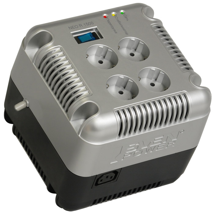 Стабилизаторы напряжения NEO R 1500 - это расширение линейки стабилизаторов (AVR) Sven Power, которые обеспечивают защиту любой электронной и бытовой техники от повышенного или пониженного напряжения, импульсных помех и опасного высокого напряжения. Номинальная активная мощность стабилизаторов 1500ВА составляет 750Вт. Стабилизаторы напряжения предназначены для эксплуатации приборов в электрических сетях 220В/50Гц с постоянно заниженным или повышенным уровнем напряжения. Современная электронная техника обладает минимально необходимым запасом устойчивости к нестабильности параметров сетевого напряжения, что часто является причиной поломки дорогостоящих узлов и элементов. Особенно актуально использование стабилизаторов NEO R 1500 для защиты современных бытовых холодильников с электронным управлением. Корпуса NEO R 1500 и NEO R 2000 абсолютно идентичны внешне. Основными достоинствами новых моделей являются: микропроцессорное управление; широкий диапазон входного напряжения и возможность подключения мощной нагрузки до 750Вт; мгновенное отключение потребителей при возникновении опасного входного напряжения свыше 278 В; стильный дизайн, компактная конструкция; 4 розетки евростандарт и возможность увеличения количества розеток для подключения дополнительного оборудования с помощью сетевого фильтра SVEN Special (приобретается отдельно). Стабилизаторы напряжения NEO R 1500 обеспечат оптимальный режим эксплуатации электронной аппаратуры. Особенности: Широкий диапазон входных напряжений Микропроцессорное регулирование напряжения Высокая перегрузочная способность Безопасное отключение нагрузки при высоком/низком уровне сетевого напряжения Защита от короткого замыкания и перегрузки Встроенный фильтр защиты от высоковольтных импульсов Обеспечивает работу системы размагничивания ЭЛТ-мониторов и телевизоров Автоматический восстанавливаемый предохранитель совмещён с выключателем Возможность подключения дополнительных потребителей с помощью розетки IEC 320 Светодиодная индикация режимов работы Технические характеристики: Максимальная нагрузка, ВА/Вт 1500/750 Уровень входного напряжения, В 150 ~ 280 Уровень выходного напряжения, В 198 ~ 242 Частота, Гц 50/60 Перегрузочная способность, % кратковременная: до 150 долговременная: до 125 Ток срабатывания защиты, А ~ 7 Максимальное напряжение отключения нагрузки, В 278 ± 3 Подавляемая энергия высоковольтных импульсов, Дж ?700 Максимальный выдерживаемый ток помехи (8/20мкс), А 20000 Условия эксплуатации: температура окружающей среды, °C - 0 ~ 40 Относительная влажность (без конденсации), % - 10 ~ 90 Индикация подключения к сети, перегрузки по напряжению, режима стабилизации Выходные розетки, шт 4 + IEC 320 Длина кабеля, м 1,7
