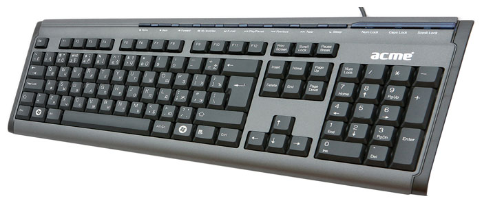 Acme KM03 Multimedia Keyboard Slim Full Size, USB, Black/Grey