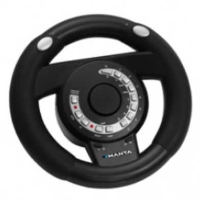 Игровой руль Manta MM624 Совместим с PS3/PS2/PS1/XBOX/PC-USB- Программируемые кнопки ГАЗ/ТОРМОЗ- Контроль тяги- Вращение 180 градусов- ВИБРАЦИЯ, 12 кнопок "fire"- 2 входа: аналоговый и цифровой- Поддержка Dual Shock 2/Dual Shock- Совместим с Windows 98/ME/NT4.0/2000/XP/Vista