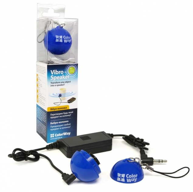 Портативная акустика вибро-колонка ColorWay CW-SPB02BL Blue Вибро-колонка CW-002 PINK Новая портативная колонка, которая создает звук на основе вибрации. Просто подключите к вашему устройству через выходной разъем, прикрепите колонку к любому объекту. Это так легко и просто! Модель с усилителем мощности, работающем на 2 батарейках ААА. Частотные характеристики: 1) Стандартный мощность: 1w; 2) Максиамальная мощность: 2W; 3) Сопротивление: 4Ом +/- 15%; 4) Частота: 500~20kHz; 5) Рабочая температура: -10°С~+50°C; 6) Входной разъём: 3.5 мм; Комплектация: 1) Виброколонка с ремешком; 2) Соединительный кабель; 3)Клейкая подушечка (2 шт); 4)Руководство пользователя;