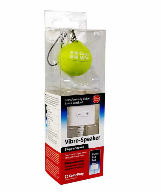 Портативная колонка ColorWay CW-SPB03GR Green Вибро-колонка CW-003 ORANGE (для ipad/iphone) Новая портативная колонка, которая создает звук на основе вибрации. .Просто подключите к вашему IPod через выходной разъем, прикрепите колонку к любому объекту. Это так легко и просто! Модель с усилителем мощности без источника питания, подключается напрямую к i-гаджету через Dock-разъем. Частотные характеристики: 1) Стандартный мощность: 1w; 2) Максиамальная мощность: 2W; 3) Сопротивление: 4Ом +/- 15%; 4) Частота: 500~20kHz; 5) Рабочая температура: -10°С~+50°C; 6) Входной разъём: DOC станция; Комплектация: 1) Виброколонка с ремешком; 2) Соединительный кабель для iPhone/iPod/iPad; 3)Клейкая подушечка (2 шт); 4)Руководство пользователя; Совместимые устройства: Колонка используется со всеми устройствами iPhone/iPod/iPad, кроме: iPod первый 5 поколения, iPod Classic первого поколения, iPod Nano, iPod Shuffle Особенности: Не нуждается в батарейках, не нуждается в подзарядке