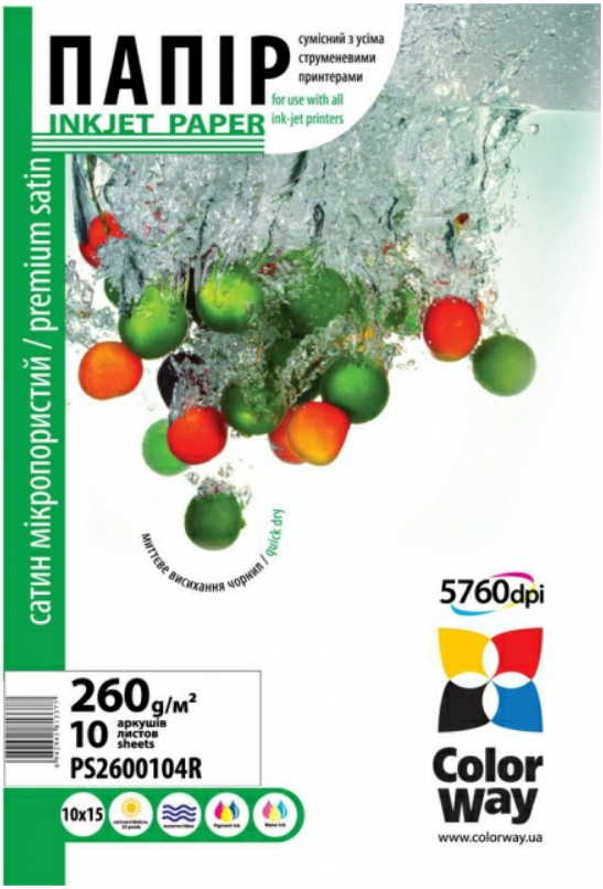 ColorWayPremiumSatinMicroporesPhotoPaper4R,260g,10pcs(PS2600104R)