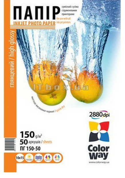 ColorWayHighGlossyPhotoPaper4R,150g,50pcs(PG1500504R)