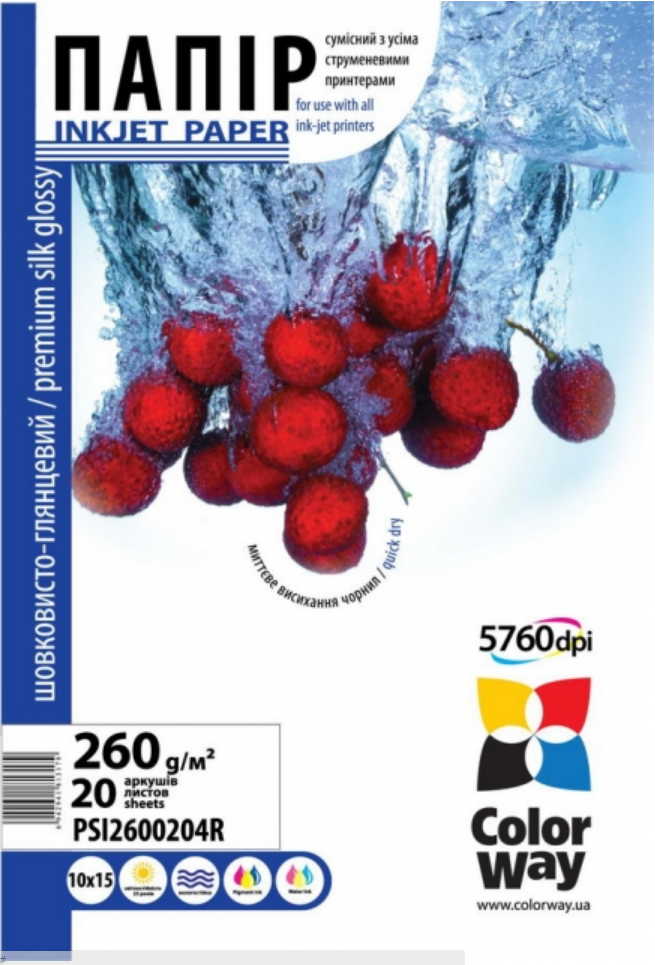 ColorWay Premium HighGlossy Silk Photo Paper 4R, 260g, 20pcs (PSI2600204R)