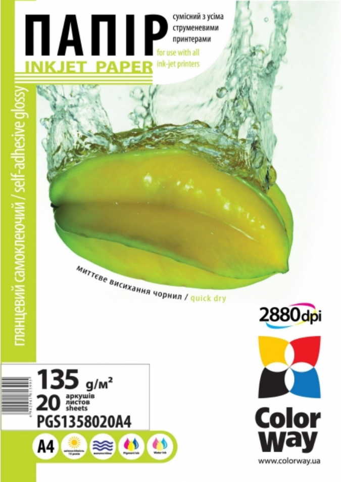 ColorWay Sticker HighGlossy Photo Paper A4, 135/80g, 20pcs (PGS1358020A4)