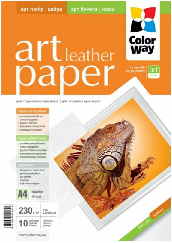 ColorWay Art Leather GlossyFinne Photo Paper A4, 230g, 10pcs (PGA230010LA4)