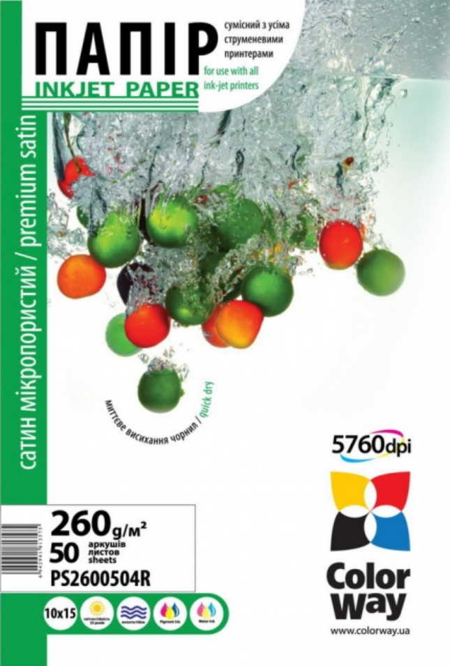 ColorWay Premium Satin Micropores Photo Paper 4R, 260g, 50pcs (PS2600504R)
