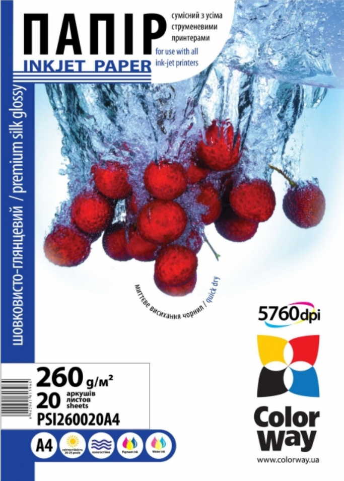 ColorWay Premium HighGlossy Wove Photo Paper A4, 260g, 20pcs (PSI260020A4)