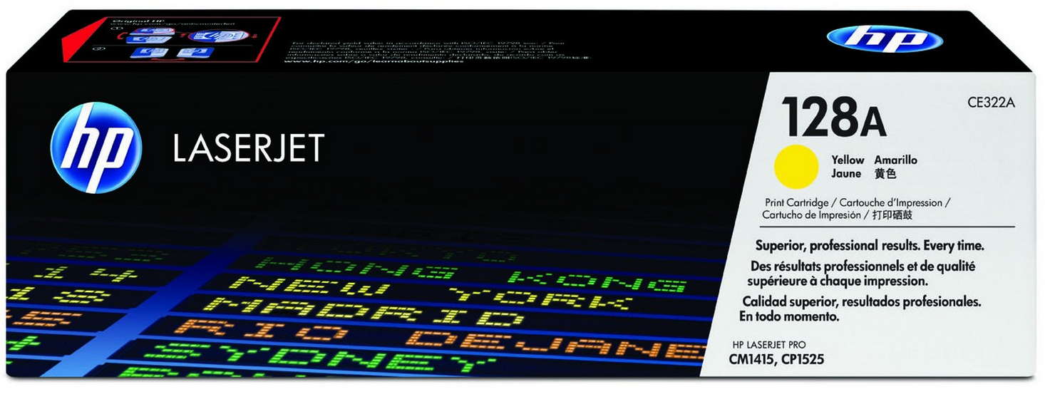Совместим CP1525N/HP CP1525NW/HP CM1415FN/HP CM1415FNW Цвет Желтый HP CE322A № 128A Картридж желтый для HP Color LaserJet CP1525N/HP CP1525NW/HP CM1415FN/HP CM1415FNW"Laser Cartridge HP CE322A yellow