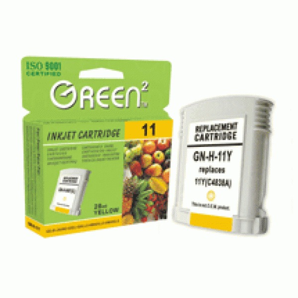 Green2 GN-H-11Y, HP 11Y (C4838A) Compatible, 28ml, Yellow: HP Business 1000/1100/1200/2200/2230/2250/2280/2300//2800; DesignJet 10/20/50ps/70/100(Plus)/110/120; CP1700; Officejet Pro K850(dn)/9100/9120/9130