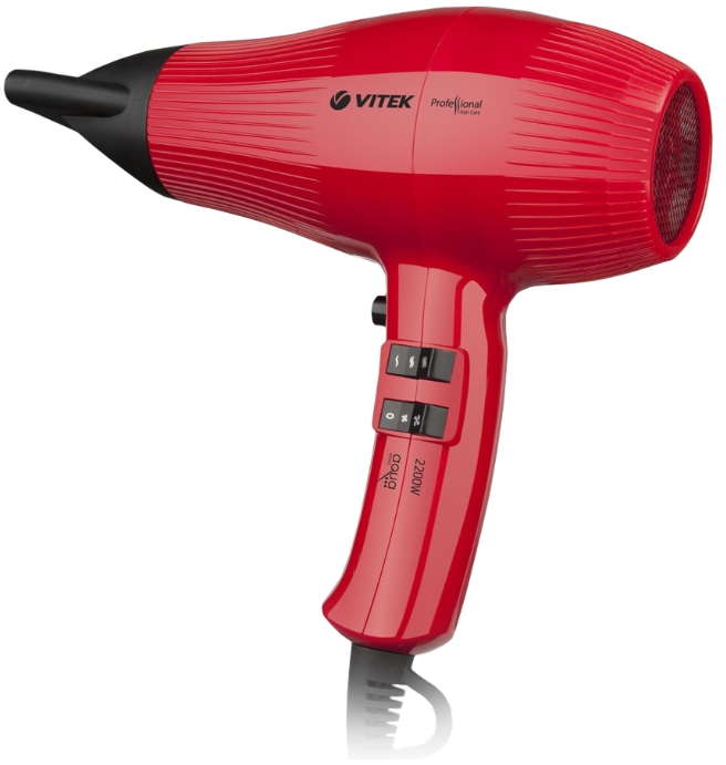 VITEK VT-2377 Яркий профессиональный фен VT-2377 привлекает внимание прежде всего оригинальным дизайном. При этом он необычайно прост в использовании благодаря эргономичному корпусу и удобному расположению кнопок управления. С данным феном вы быстро создадите стильную прическу или просто высушите волосы, ведь его мощности 2000 Вт хватит, чтобы справиться с этими задачами за пару минут! В комплекте предлагается одна насадка, но ее будет вполне достаточно, чтобы всегда выглядеть безупречно! Длина шнура питания составляет 2,5 метра! Теперь вы можете приводить себя в порядок вдали от розетки. Насадки: Концентратор Функция ионизации: Eсть Подача холодного воздуха: Eсть Особенности: Петелька для подвешивания, Cъемный фильтр Вес: 0.3 Кол-во температурных режимов: 3 Кол-во скоростей: 2 Мощность: 2000 Вт Тип: Oбычный