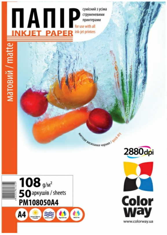 ColorWay MatteCoated Photo Paper A4, 108g, 50pcs (PM108050A4)
