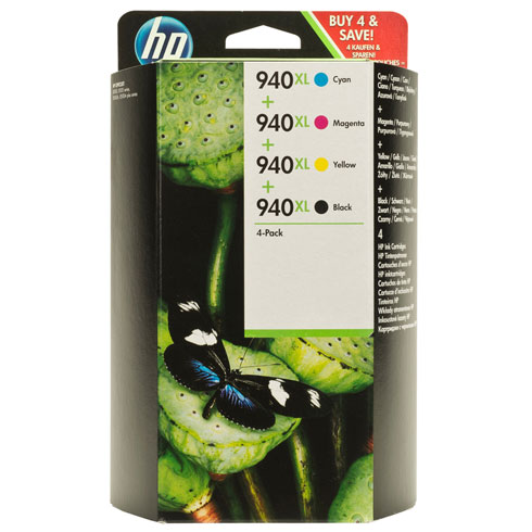 HP №940XL Combo-pack Black/Cyan/Magenta/Yellow Officejet Ink Cartridges, Up to 2200/1400 pages for Officejet Pro 8000/8500 series Выход страницы голубой, пурпурный, желтый: 1400 страниц каждый Черный: 2200 страниц