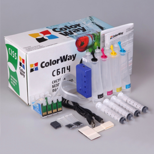 CISS ColorWay XP-600 BK/C/M/Y/BkPGI, Epson XP600/XP605/XP700/XP800 (w/Ink, w/Cartridge+Chip)