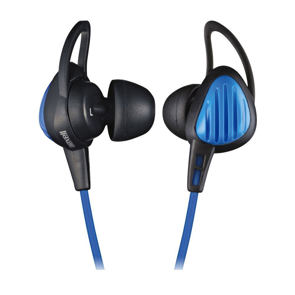 MAXELL "HP-S20" Blue, Sports Earphones, IPX7 standard – Sweat resistant and washable, "Rabbit Support" - fit your ears comfortably and securely, Ideal for wearing with sunglasses, Soft silicon ear tips, 1.2m cable with clip, L-Plug