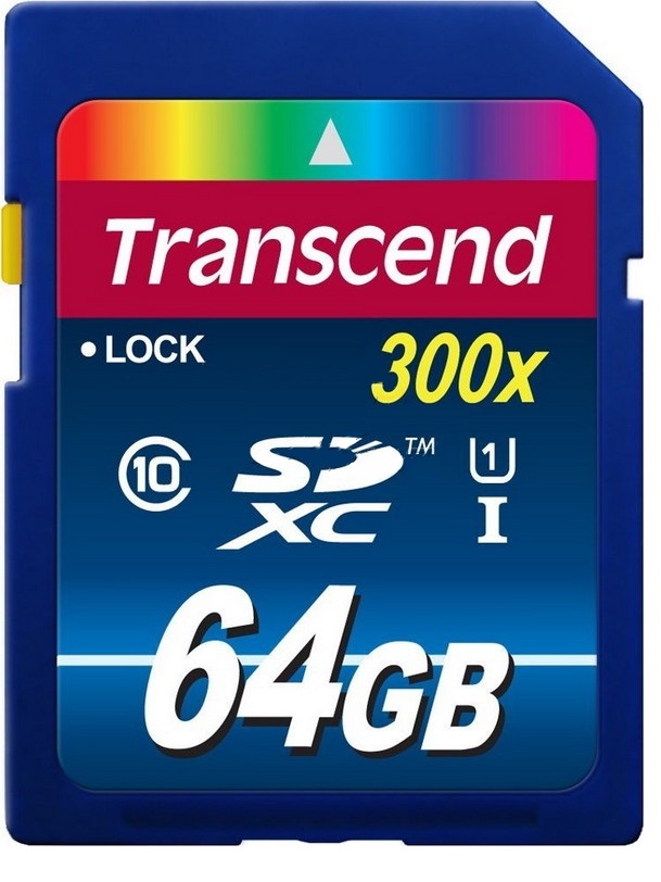 .64GB SDXC Card (Class 10) UHS-I, 300X, Transcend "TS64GSDU1" Premium (R/W:90/25MB/s)