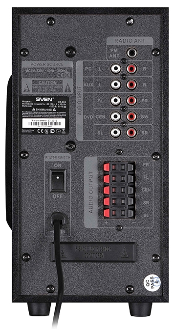 Колонки SVEN HT-200 Black система 5.1 усилитель мощности суммарная мощность 80 Вт материал корпуса колонок MDF пульт ДУ