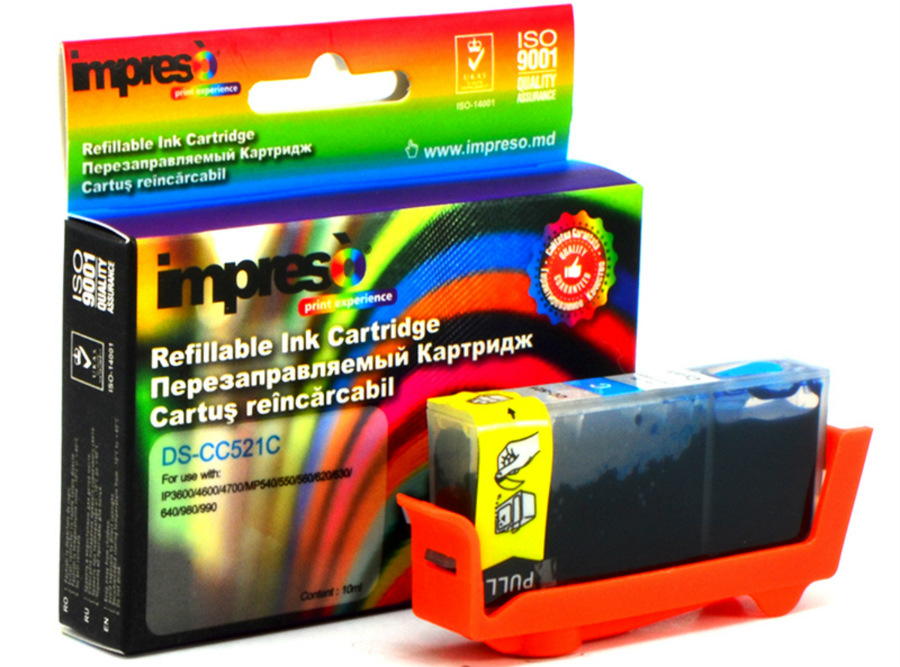 Impreso IMP-DS-CC521C Cyan Refillable Canon iP3600/4600/4700/MP540/550/560/620/630/640/980/990/MX860/870, w/chip (10ml)