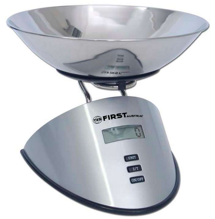 FIRST 006404 Тип весов электронные Максимальный вес 5 кг Чаша есть Материал чаши/платформы нерж.сталь Цена деления 2 г Тарокомпенсация есть Автоматическое выключение есть Цвет серебристый Производитель First
