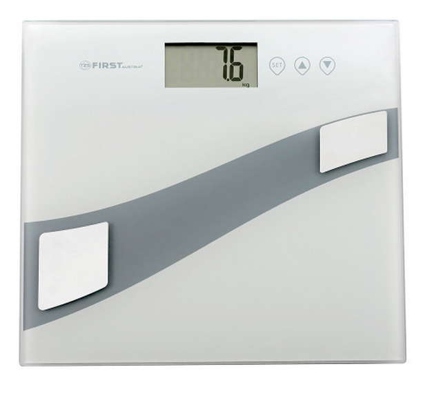 Определение % жира/% воды Большой цифровой ЖК-дисплей Платформа из особо прочного стекла 8 мм Автоматическое включение при вставании на весы Автоматическое вылючение Индикатор перегрузки Индикатор заряда батареи Память: 12 пользователей 35,6 мм ЖК-дисплей Питание:x3V Размер: 26x30 см