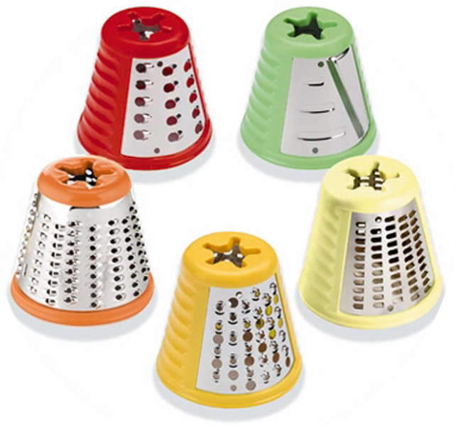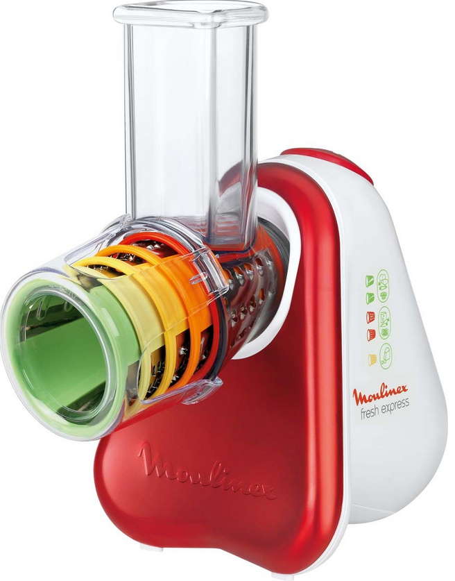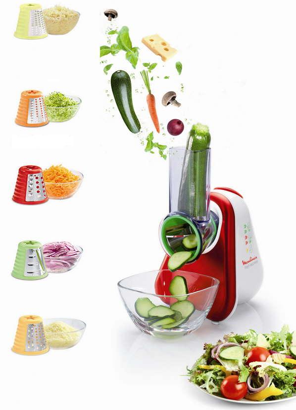 Измельчитель MOULINEX DJ756G Мультирезка Fresh Express экономит время для более важных занятий Вероятно, каждая активная женщина хотя бы раз мечтала о сутках, состоящих из 48 часов. Ведь так хочется успеть все и чуть-чуть больше. Дом, работа, друзья, досуг… Но очень часто реализуется только половина из задуманного. Специально для женщин, ценящих силы и время, компания Moulinex создала мультирезку Fresh Express. Прибор оснащен 5 разноцветными легкосменными терками, которые в считанные секунды порежут или нашинкуют овощи для супа, овощного рагу, салата, гарниров и других блюд, с его помощью можно приготовить фруктовые салаты, натереть сыр и пр. Варианты использования мультишредера Fresh Express ограничены только вашей фантазией! С помощью 5 насадок Fresh Express режет овощи ломтиками, спиральками, соломкой и мелкой стружкой. Необходимо только нажать большую красную кнопку и через пару минут салат практически готов, остается только заправить блюдо. Прибор трет всевозможные виды сыров, и даже пармезан. Легко справляется с шоколадом и другими продуктами. Теперь каждая хозяйка может радовать своих подруг домашним шоколадным напитком, а детей – пудингом со стружкой. В отличие от обычной терки или овощерезки, мультишредер Fresh Express абсолютно безопасен – нет риска пораниться при натирании или шинковке, работает только при нажатии и удержании кнопки. Мультирезка Fresh Express – это удобный, легкий и компактный прибор, а терки к ней хранятся прямо на корпусе и всегда под рукой. Даже провод уютно прячется в специальный отсек! А сама она выглядит очень стильно за счет красного цвета и оригинального дизайна, благодаря чему легко впишется в любой уголок кухни. • Мультирезка Fresh Express+ • Количество насадок в комплекте: 5 • Мощность: 150 Вт Особенности • Легко менять насадки • Удлиненный носик: удобно для салатов на всю семью • Нарезает салаты прямо в тарелку • Универсальность • Компактность • Удобство использования Насадки • Терка • Мелкая терка • Терка для драников • Тонкая нарезка • Толстая нарезка • Габариты: 25,2х24,7х23,8 см • Вес нетто/брутто: 1,4/2,1 кг • Цвет: белый/красный Страна производитель: Франция
