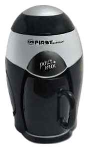 FIRST 005463 Тип капельная Используемый кофе молотый Мощность 350 Вт Манометр нет Автоматическая декальцинация нет Таймер нет Автоотключение есть Конструкция Фильтр постоянный Противокапельная система нет Одновременное приготовление двух чашек нет Дисплей нет Подача горячей воды нет Съемный лоток для сбора капель нет Особенности Материал корпуса пластик Индикатор уровня воды нет Индикация включения есть Дополнительная информация кофеварка на 1 чашку; керамическая чашка в комплекте
