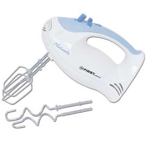 FIRST 005266 Тип ручной Мощность 200 Вт Количество скоростей 5 Крюки для теста есть Венчики для взбивания есть Материал чаши пластик Кнопка отсоединения насадок есть Цвет белый, голубой Производитель First