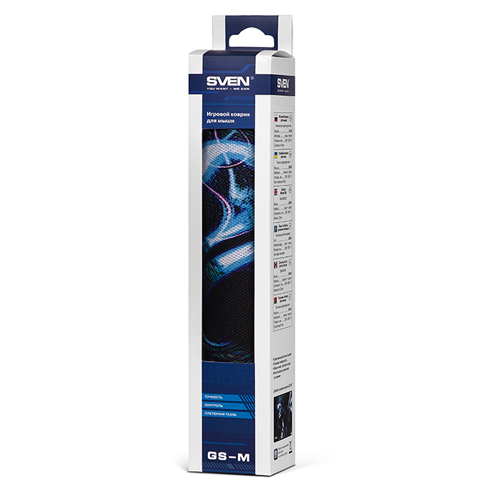 SVEN GS-M Современный игровой дизайн Тканевая поверхность Оверлочная строчка по краю Нескользящее резиновое основание Материал ткань + каучук Размеры изделия, мм 360 x 265 x 3