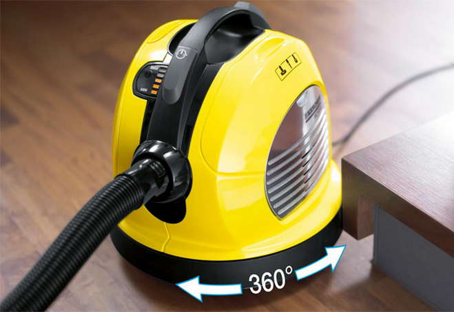 Пылесос сухой уборки Karcher VC 6300 Самый удобный подход к уборке! Пылесосы серии VC предлагают сделать уборку не только эффективной, но и максимально комфортной для Вас. Основные преимущества пылесосов этого класса: 1. Максимальный комфорт уборки в сравнении со всеми сопоставимыми пылесосами благодаря мировым новинкам: ¦ системе быстрой замены насадок QuickClick, ¦ насадке для пола ComfoGlide, обеспечивающей более тщательную уборку и снижающей затраты усилий, ¦ системе огибания препятствий EasySlider, оберегающей мебель и дверные косяки. 2. Высочайшая сила всасывания (2000 Вт, мощность всасывания на входе насадки 400 Вт). 3. Привлекательный дизайн и широкие функциональные возможности. 4. Максимальная гигиеничность уборки: для аллергиков и лиц, уделяющих повышенное внимание созданию гигиенических условий. 5. Выпускаемый пылесосом воздух чище комнатного! Время диктует новые требования к качеству бытовой уборки. В новой топ-модели Karcher VC 6300, рассчитанной на удовлетворение высочайших запросов, есть все, что только можно ожидать от высокопроизводительного пылесоса, - и многое, чего нельзя найти ни в одном другом пылесосе. Оптимальное сочетание высокой мощности, комфорта и целого ряда инновационных решений превращает его в пылесос экстра-класса! Технические новинки, обеспечивающие оптимальную эффективность уборки и гарантирующие максимальный комфорт: предложенная впервые в мире система замены насадок QuickClick. Достаточно лишь вставить рукоятку или удлинительную трубку в насадку, расположенную в корпусе пылесоса, защелкнуть ее и можно продолжать работу дальше. Все четыре насадки находятся на корпусе пылесоса. Уникальная насадка для пола ComfoGlide с выдвижными колесиками звездообразной формы, ощутимо облегчающими чистку ковров. Насадка не присасывается к полу даже при работе на максимальной мощности. Для чистки твердых напольных ковров колесики убираются нажатием педали. А также практичная система огибания препятствий EasySlider. Когда пылесос наталкивается на препятствие, эластичное поворотное кольцо позволяет ему аккуратно и элегантно обойти его. Защита мебели и самого пылесоса. Karcher VC 6300 оснащен дистанционным управлением на рукоятке. На корпусе пылесоса отображается установленная мощность светодиодным индикатором. Функция stand-by для отключения пылесоса на время перерывов в работе.