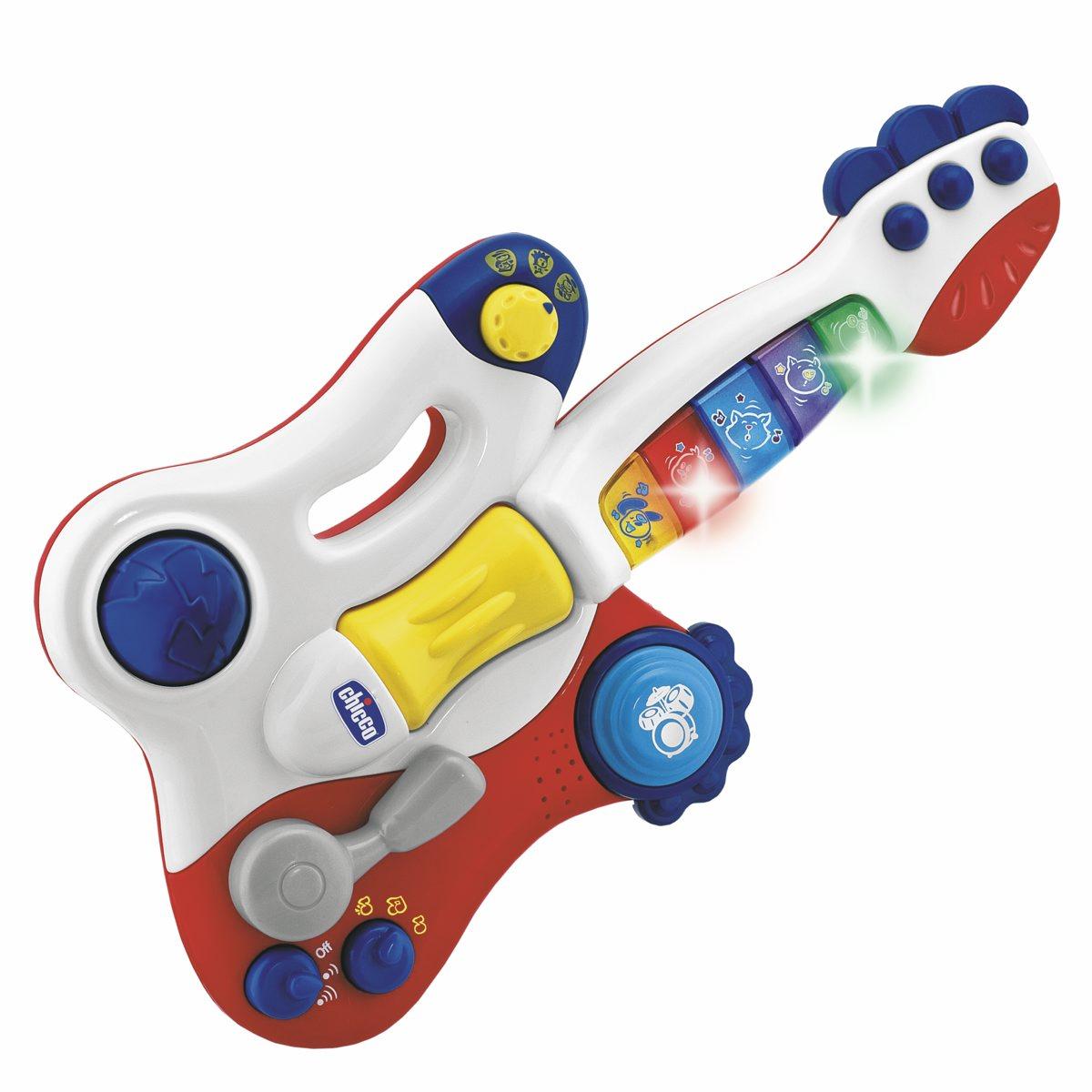 Развивающая игрушка «Творческая гитара» с 3 функциями игры: - 5 коротких мелодий - 15 мелодий в трех музыкальных жанрах - мелодии с животными На ней возможно исполнение 3 музыкальных жанров: рок, поп, блюз. А также выбрать между 3 методами игры (короткие мелодии, записанные мелодии и повторяй за мной). 23 записанные мелодии можно улучшить с помощью 3 различных функций микшера: роллер, барабанная установка, ускорение ритма. Технические характеристики: работа от 2 батареек AA х1,5В