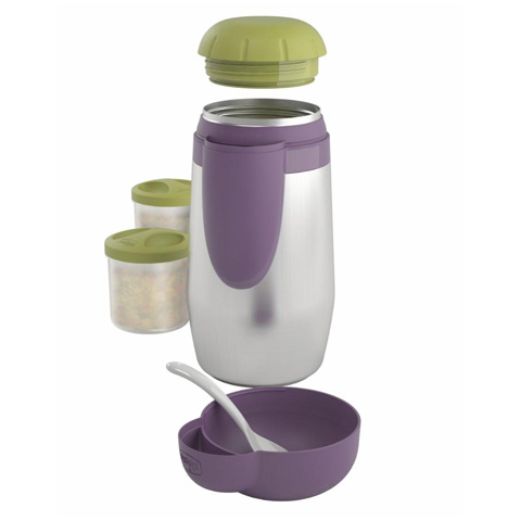 Бутылочками линии Chicco Step Up можно использовать и на улице, так как благодаря термосу для бутылочек и напитков Step Up Famaly из нержавеющей стали, питание для Вашего малыша остается теплым при определенной температуре в течение 5 часов.Термос для детских бутылочек и напитков гарантирует максимально удобное кормление ребенка вне дома, благодаря двум емкостям по 250 мл ( для детского питания, бульонов и каш), удобному карману для детских приборов и колпаку, используемому в качестве чашки. Контейнер из нержавеющей стали может использоваться также в качестве термоса для переноски горячей и холодной пищи или освежающих напитков для всей семьи.