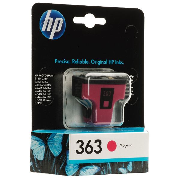 HP C8772EE No 363 magenta Cartridge, for 3110,3210,8250,C6270,D7160,D7200,D7260, (3.5ml, 370 pages) Описание товара HP Нет 363 Пурпурный картридж C8772EE Тип продукта картриджа для принтера (фото) Технология печати струйная Печать Цвет Magaenta Включенная Кол-во 1 Картридж Емкость 3,5 мл