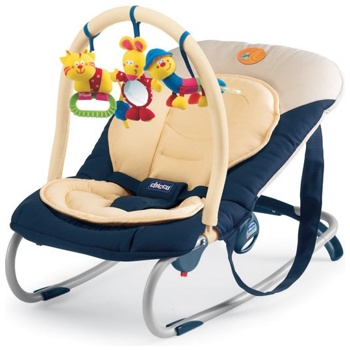 Кресло-качалка «Relax & Play» следует за ростом малыша, обеспечивая ему необходимый комфорт. Благодаря специальному анатомическому вкладышу из дышащей ткани с наполнением Ergos, кресло-качалка превращается в "уютное гнездышко" для новорожденного. Вкладыш Ergos можно убрать, когда малыш подрастет, чтобы предоставить ему больше свободы. Спинка имеет регулировку высоты. Снабжено двумя удобными ручками для переноски. В комплект входит дуга с игрушками, зеркальце и погремушка-грызун. Вес шезлонга - около 3 кг, нагрузка до 9 кг.