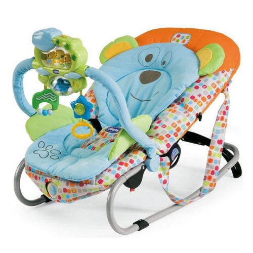 Кресло-качалка Chicco "Dreams" обеспечит максимальный комфорт Вашему ребенку. Когда малыш совсем маленький, вставка в форме мишки может использоваться как большая, удобная подушка-вкладыш. Затем, когда малыш подрастет - как мягкий друг. Электронная игрушка с различными огнями и мелодиями привлекает внимание малыша, развивает зрительные навыки, хватательные рефлексы, чувство ритма в музыке. Отличительные особенности: - электронная игрушка с 5-ю забавными мелодиями, 3-мя поющими медведями и веселыми световыми эффектами, которые могут быть активизированы ребенком; - две висящих игрушки и вращающаяся сфера; - лапа медведя (вставки) имеет специальный наполнитель, при сжимании она издает забавный шелест; - кресло-качалка имеет систему вибрации, которая расслабляет и успокаивает ребенка; - можно использовать как качалку и как обычное кресло; - спинка и положение ножек легко регулируется, что делает кресло идеальным как для игры, так и сна; - игровая панель может быть снята, что позволит Вам очень легко размещать ребенка в кресле; - основание легко разбирается; - ремни безопасности с двойной безопасной застежкой позволяют удобно закрепить ребенка в кресле; - два ремня переноски; - нетоксичные, стирающиеся материалы. Стандарты безопасности проверенны и одобрены наиболее авторитетными европейскими лабораториями. Возраст: для детей от 0 до 6 месяцев (до 9 кг) Размер: 78х43х32/62 см Вес: 4,1 кг