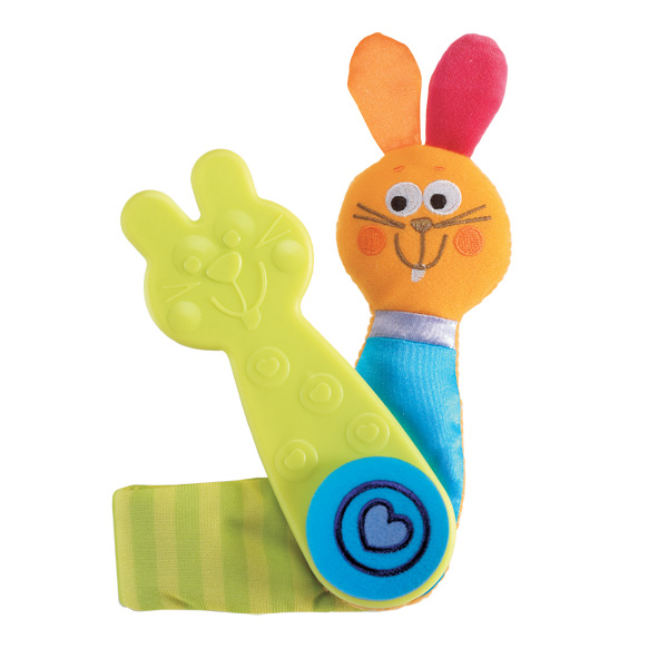 ** ** **Погремушка-грызунок «Кролики: Прятать и искать».** Два вращающихся кролика помогут ребенку развивать навыки координации. Погремушка-грызунок изготовлена из тканей различной фактуры, и с помощью маленького зеркальца можно поиграть в прятки. Один из кроликов изготовлен из мягкого пластика, его можно использовать в качестве грызунка. Игрушка крепится к коляске.