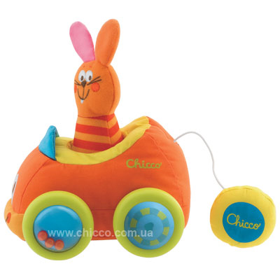 **Мягкая игрушка "Кролик-водитель"** яркого цвета идеально подходит для ребенка, который начинает самостоятельно ползать и передвигаться. Если потянуть за запасное колесо, которое находится на автомобиле, он начнет самостоятельно вибрировать и двигаться. Игрушка развивает моторику рук и ног, а также восприятие звуков. Изготовлена из экологически чистого материала.