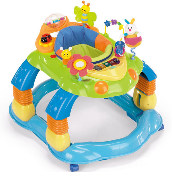 **Ходунок "Giocagiro - Activity center" (3 в 1)** **Особенности:** - соответствует нормам EN1273 - возрастная группа: от 6 до 12 месяцев - на задней стороне основания есть клавиша, которая активирует функцию раскачивания и замедляет ходунки - два вращающихся колёса позволяют малышу легко менять направление движения - сидение изготовлено из материала, который можно снять и стирать при 30°C - ходунки очень легкие, имеют противоударные края и защитный механизм от случайного складывания - игровая панель работает от двух батареек AAA (не включены), включает в себя 14 симпатичных звуковых и световых игрушек, которые стимулируют моторику малыша, развивают слух и восприятие - детский стульчик, который вращается на 360 градусов и таким образом позволяет ребенку достигать всех игрушек, которые это окружают - ходунки дают малышу возможность вращаться вокруг себя, благодаря устройству на задней части, которое блокирует ходунки, и позволяет совершать только круговые движения - есть клавиша, регулирующая ходунки по высоте, возможны 3 положения - абсолютная безопасность: основание ходунков снабжено передним и задним противоскользящим механизмом, которое гарантирует блокировку ходунков вблизи лестниц **Вес** - 5,5кг **Размеры** (вxшxг): 48x75,5x63см В сложенном виде (вxг): 40x75,5см