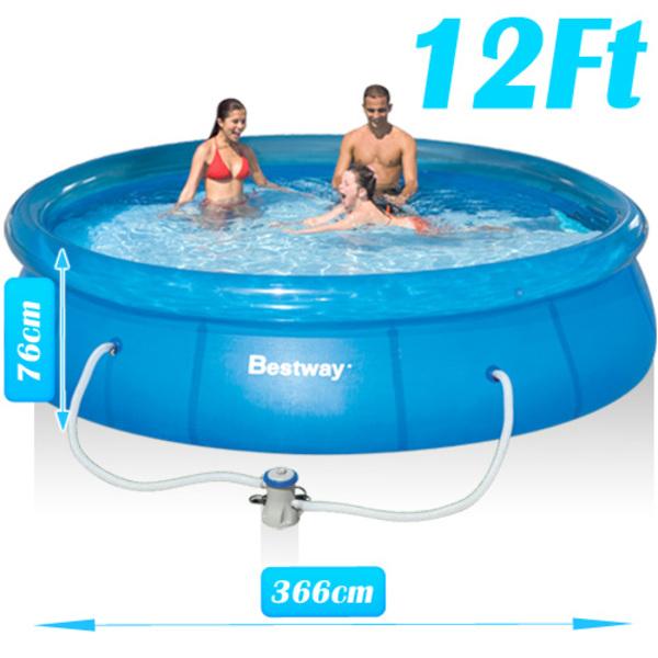 Все популярные Bestway быстрого набора бассейн изготовлен по самым высоким качеством. Это Bestway быстрого отверждения бассейн изготовлен из ПВХ и полиэстера тяжелых три слойный боковые стенки, обеспечивая длительный срок службы.Быстро указан бассейн является самым простым из всех в настройке, просто выберите ровную поверхность, взорвать верхнее кольцо и залить водой, так как вода поднимается верхнее кольцо поплавки подтягивание стены с ним. Каждый бассейн оснащен управления потоком сливного клапана для легкого слива, который придает садового шланга, так что вода может быть слита от бассейна. Особенности: Размер: 366cm х 76 см Вместимость воды (80%): 5377L (1421 галлон.) Фильтр насоса: 330 галлон. Легкая установка Тяжелые ПВХ и полиэстер побочные 3-слойные стены Гильза поддерживается надувной верхнего кольца Выберите ровную поверхность, надуть верхнее кольцо и бассейн будет расти, как он наполнен водой Управление потоком сливной клапан для легкого слива от бассейна