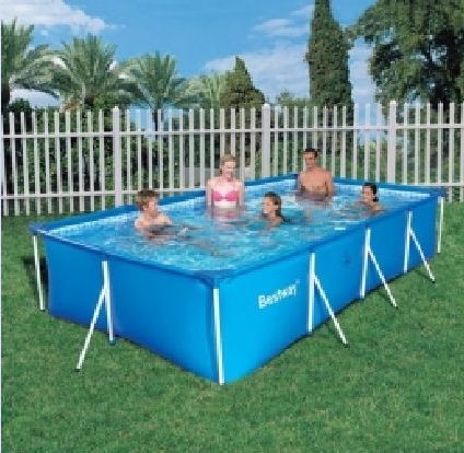 Сборные бассейны состоят из металлического каркаса Чаши бассейна из армированого ПВХ (так называемый мешок). Длина:400 см. Ширина: 211 см. Высота: 81 см. Вес: 32.6 кг. Объем(90%): 5700 л.