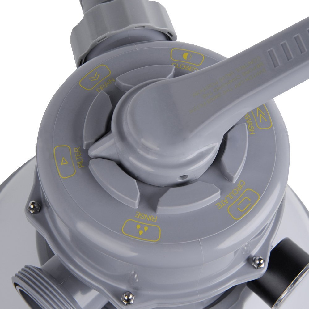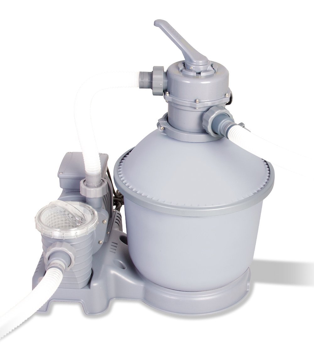 Производитель BESTWAY Модель 58257 Описание Песочный насос-фильтр Bestway 3785л/ч 58257 предназначен для фильтрации и циркуляции воды в каркасных и надувных бассейнах диаметром от 3,66 до 5,49 м. фирм INTEX и BestWay. Производительность насос-фильтра составляет 3785 л/ч. В качестве фильтрующего элемента применяется кварцевый песок с размером частицы 0,45-0,85 мм (приобретается отдельно), масса используемого песка 18 кг. Насос-фильтр имеет 5 режимов работы: 1. Фильтрующий - этот режим используется для фильтрации воды в бассейне и устанавливается в 99% случаев работы фильтра. 2. Обратная промывка - используется для очистки песчаной массы. 3. Промывка - применяется при первом пуске, очистке и выравнивании песчаной массы после обратной промывки. 4. Циркуляция - в этом режиме вода из бассейна циркулирует, минуя песчаный фильтр. 5. Слив - используется для выкачивания воды из бассейна.