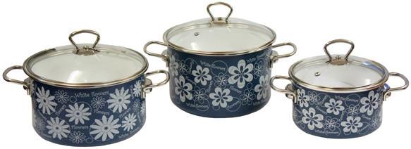 Набор кастрюль 2л/4/5,5л Белые цветы VITROSS 8DB095S-1
