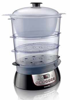 HD9140/91 Philips Aparat de gatit cu abur Pure Essentials Collection пароварка Мощность: 900 Вт Вместительные чаши: 2,5 / 2,6 / 3,5 л Вместительный резервуар для воды: 1,1 л Напряжение/частота: 220-240 В/50-60 Гц Длина шнура: 1 м Количество чаш: 3 Материал: пластиковые и стальные части Индикатор включения питания Индикатор уровня воды Защита от перегрева и от включения без воды Устройство Flavour Booster Оптимальные предустановки таймера Внешнее устройство для долива воды во время приготовления Функция Keep Warm для поддержания температуры блюда перед подачей Цифровой таймер с сигналом готовности и автоматическим отключением Возможность мыть в посудомоечной машине Состовляемые контейнера Съемное дно Нескользящая ножка Ненагревающиеся ручк Приспособление для хранения шнура Чаша для варки XL: 2,5 л Подставка для яиц Габариты в упаковке: 28,5х28,5х33,2 см Вес в упаковке: 2,8 кг