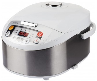 Электрогриль Philips HD3037/70 Тип: мультиварка Мощность: 980 Вт Объем: 5 л Материал корпуса: металл/пластик Покрытие чаши: тефлоновое Часы: есть Управление и программы Управление: электронное 3D нагрев: есть Автоматических программ: 12, включая: выпечка, каша, крупа, тушение, приготовление на пару, плов, жарка, йогурт Максимальное время установки таймера: 24 ч Ручная регулировка: времени приготовления Поддержание тепла: есть Отложенный старт: есть