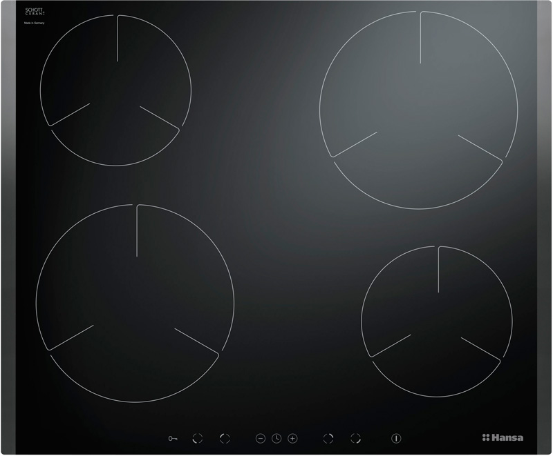 Варочная панель Hansa BHC63505 электрическая варочная панель стеклокерамическая поверхность керамические конфорки двухконтурная конфорка переключатели сенсорные защита от детей индикатор остаточного тепла независимая установка габариты (ШхГ) 60x50 см